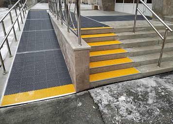 К сожалению, повреждена партия готовых тактильных покрытий для слабовидящих и покрытий для детских площадок. Мы уже предпринимаем меры для их восстановления.