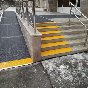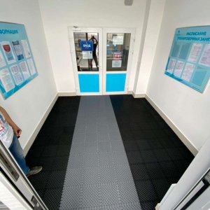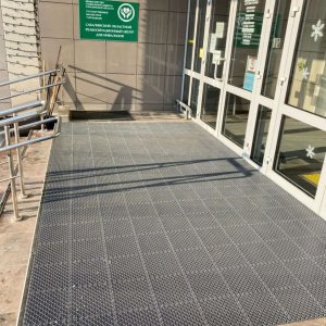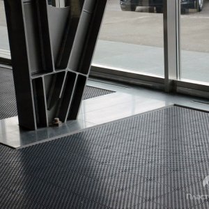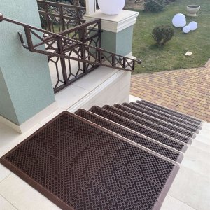 Крупноячеистые коврики, расположенные перед входной группой, счищают крупные комья снега и грязи. Важными характеристиками таких покрытий является степень грязезадержания и возможность быстрой очистки для повторного использования.