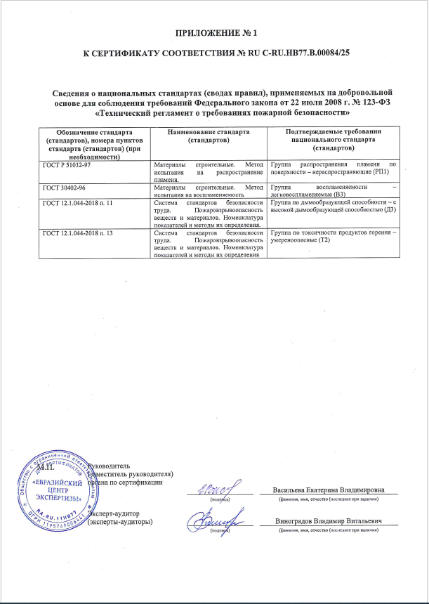 Сертификат соответствия на покрытия Бронепласт (Приложение)