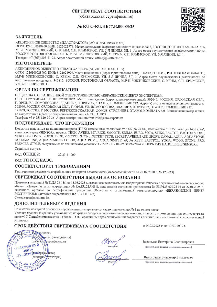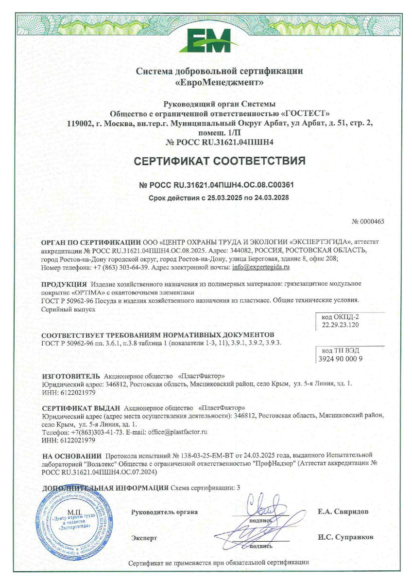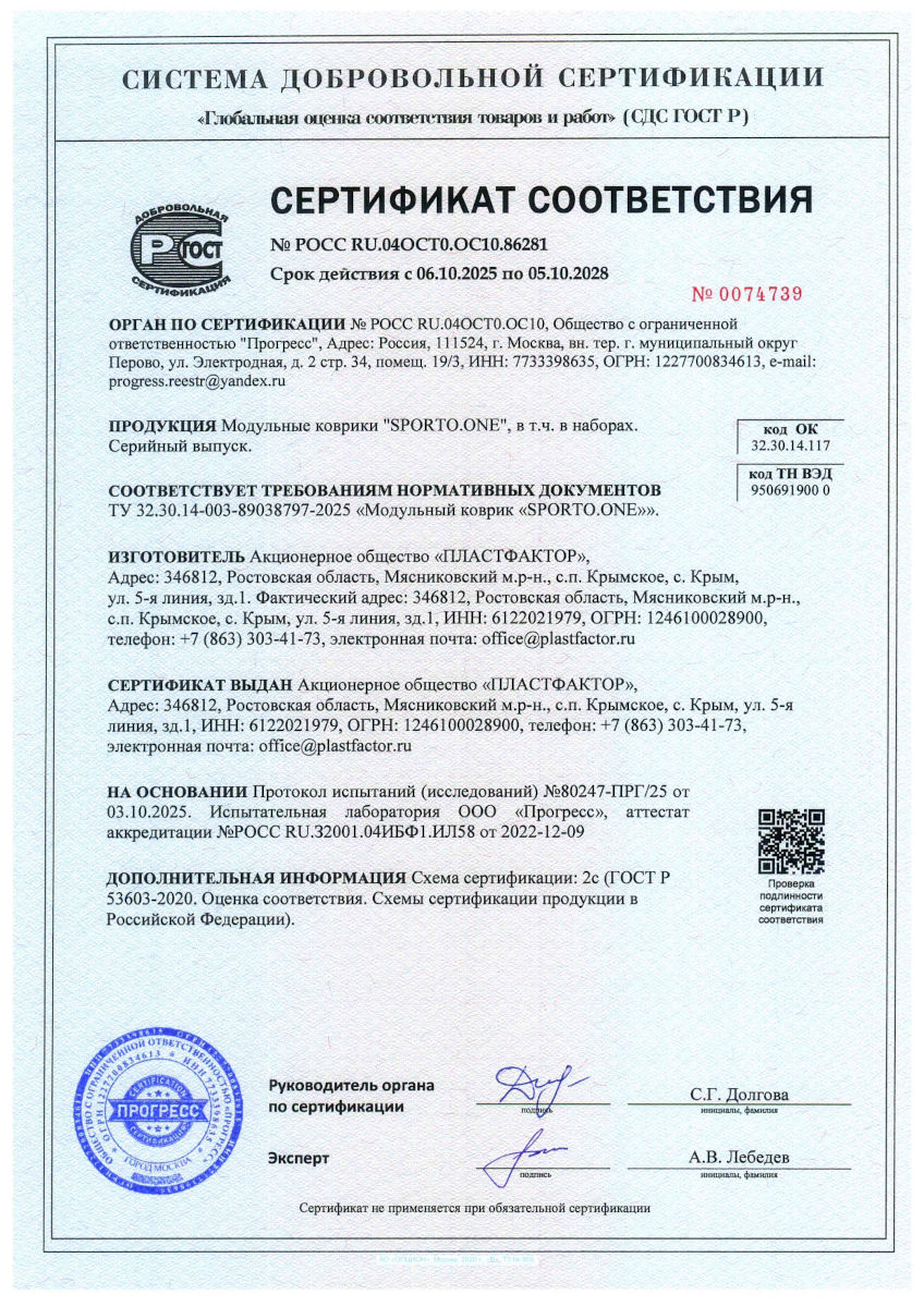 Сертификат соответствия на Модульные коврики SPORTO.ONE