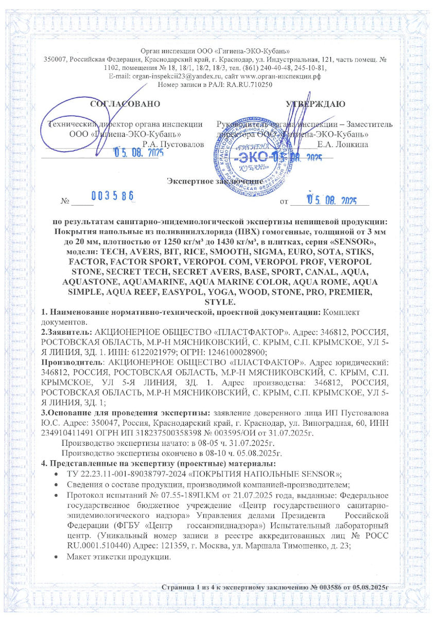 Экспертное заключение на покрытия Sensor (стр. 1)