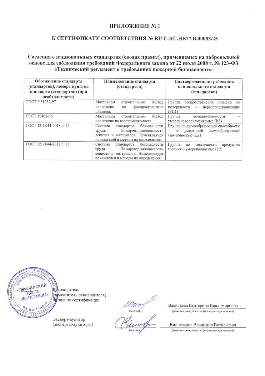 Пожарный сертификат на покрытия Sensor (Приложение)
